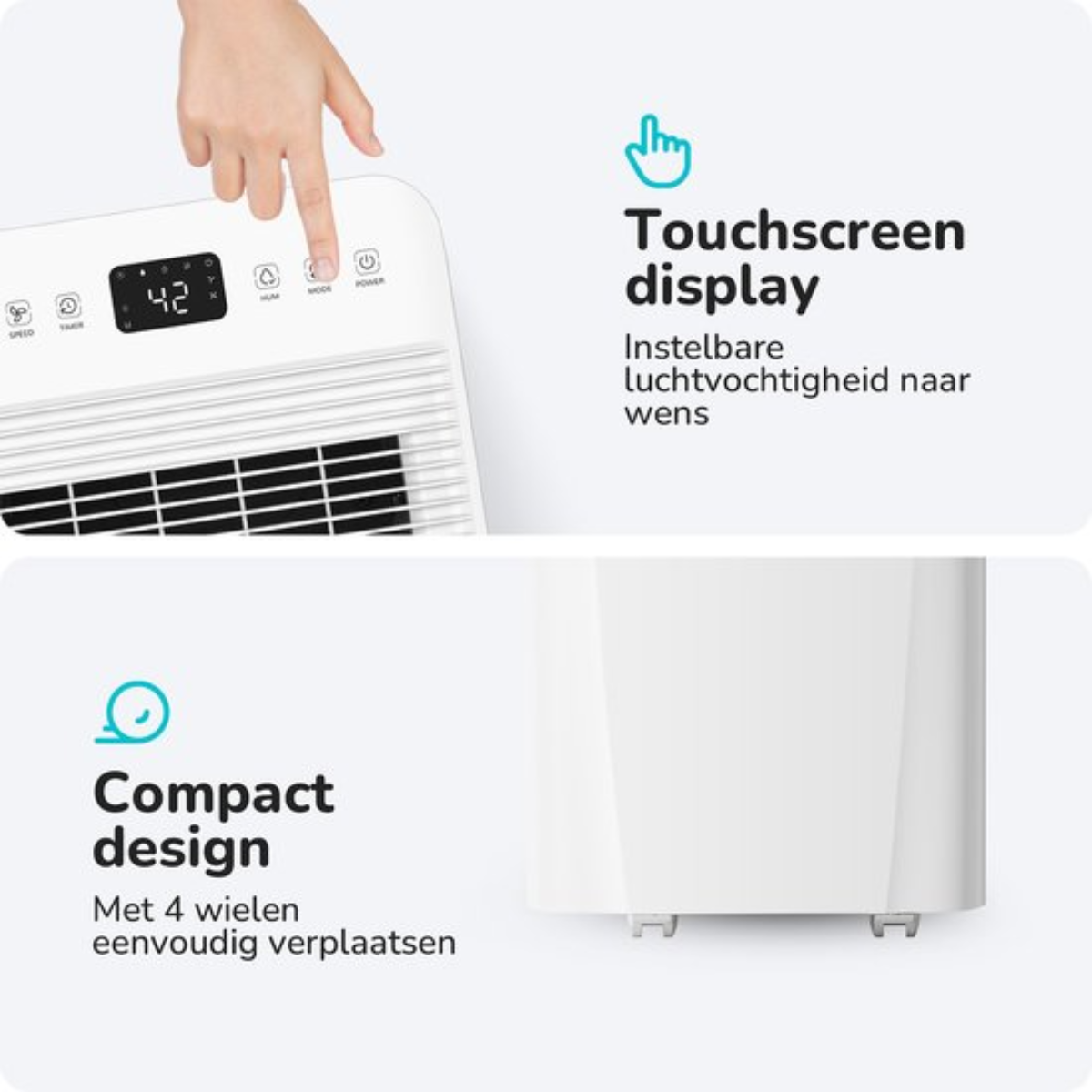 Inclusief LED-indicatie: Dankzij de handige LED-indicatie heb je altijd inzicht in de status van de luchtontvochtiger en kun je de instellingen eenvoudig aanpassen. Zo zie je in één oogopslag of een ruimte te vochtig is.
