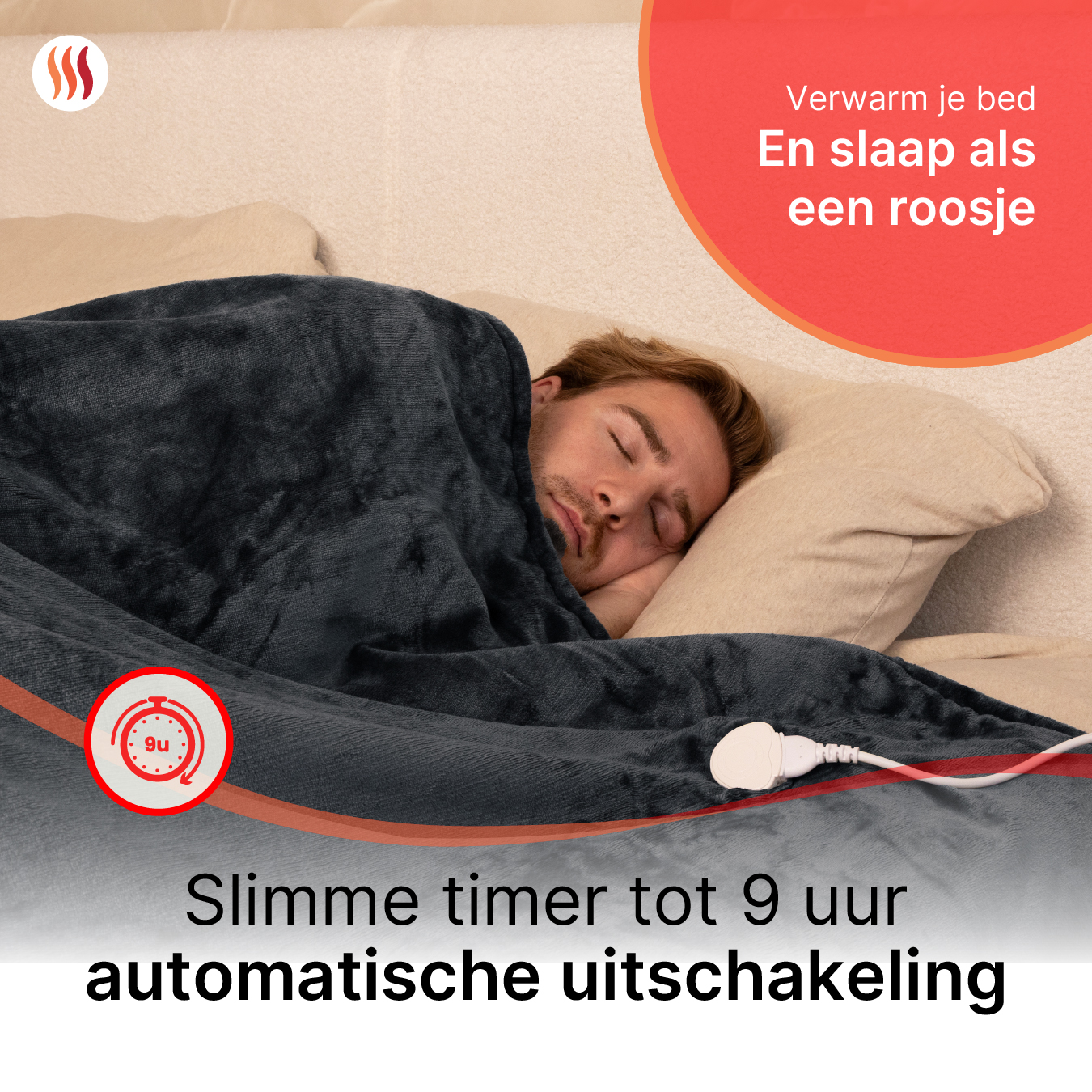 Met de slimme timer stel je de verwarmingsduur naar wens in, ideaal om je bed voor te verwarmen of om zorgeloos in slaap te vallen. Na de ingestelde tijd schakelt de deken automatisch uit, zodat je altijd veilig kunt genieten.