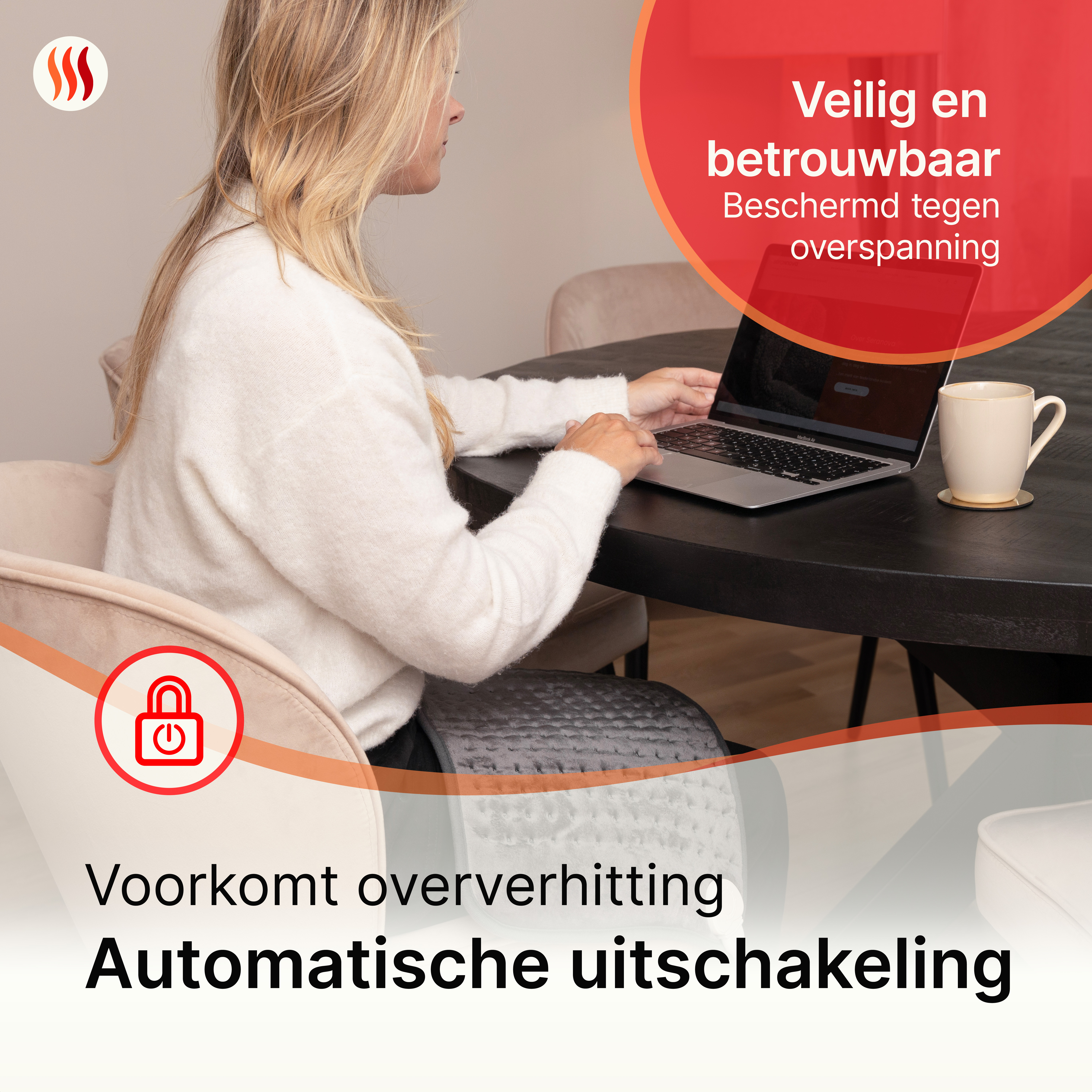 Wil je warmte en ontspanning bij koude dagen of verlichting bij spier- en menstruatiepijn? Het Seranova warmtekussen geeft snel gerichte warmte waar je dat nodig hebt. Met 9 instelbare standen kies je eenvoudig de juiste temperatuur. Binnen korte tijd bereikt het kussen 37–38 °C, ideaal om spieren te ontspannen en de bloedsomloop te stimuleren.
