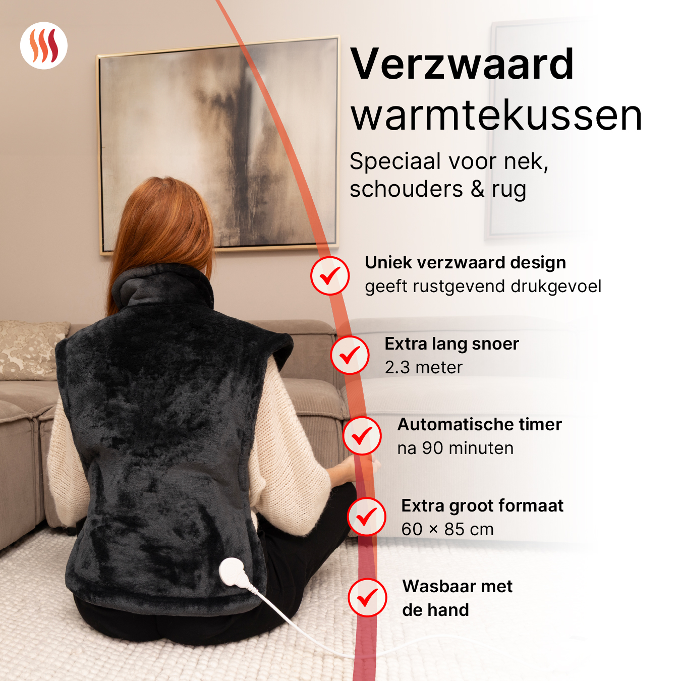 Last van pijnlijke spieren of stijfheid in rug, nek of schouders? Het Seranova verzwaard warmtekussen combineert gerichte warmte met rustgevende druk. Dankzij de ingebouwde verzwaarde secties vormt het kussen zich nauwkeurig naar je lichaam, blijft het stevig op zijn plek en geeft het een aangenaam drukgevoel dat extra ontspannend werkt.
