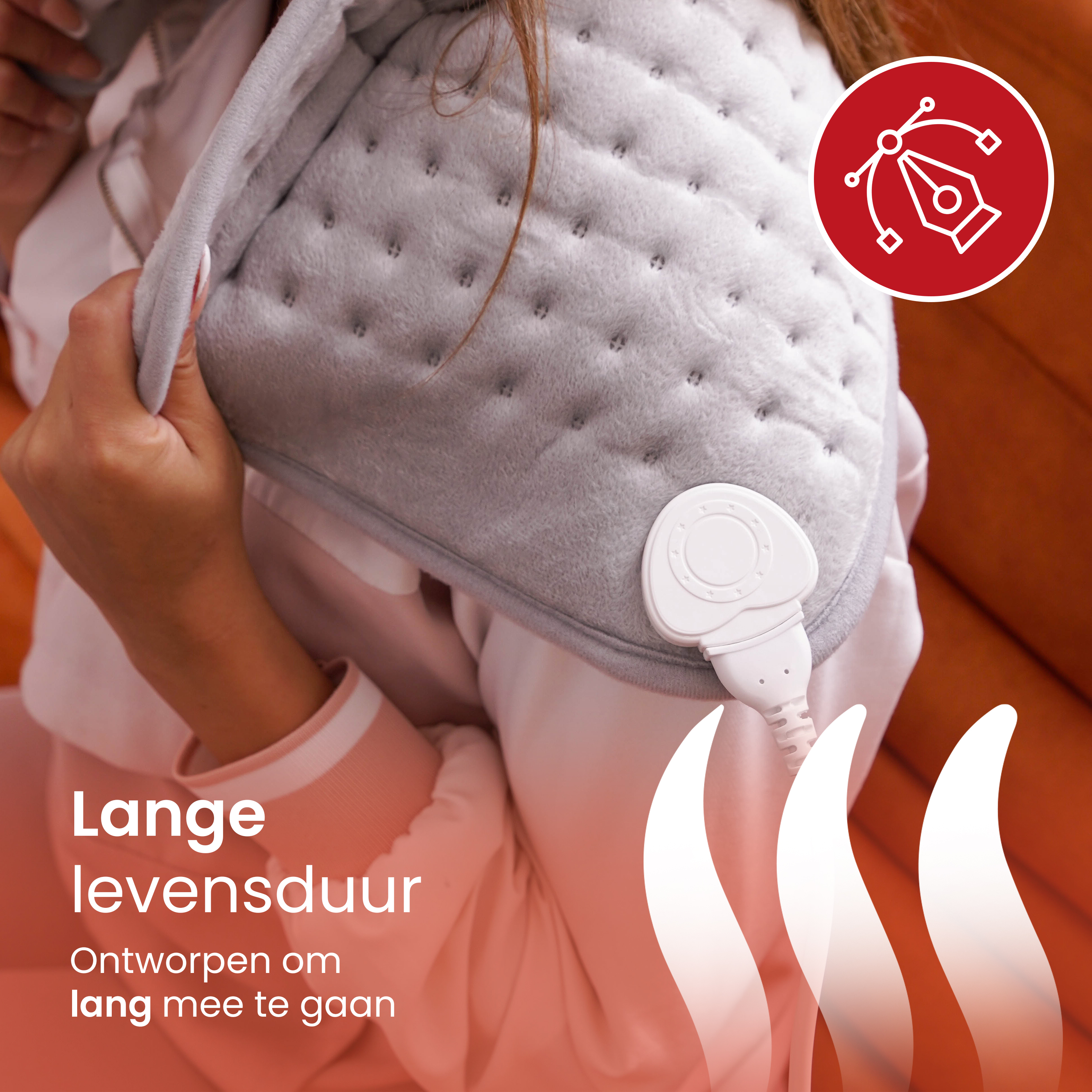 Voor extra gemak is de kabel afneembaar en kan de hoes met de hand worden gewassen. Zo blijft je warmtekussen altijd fris en hygiënisch, klaar voor dagelijks gebruik. Met het lange snoer van 230 cm gebruik je het overal in huis: op de bank tijdens een film, in bed voor extra comfort of zelfs tijdens werkuren op je bureaustoel.