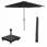 Het doek van de stokparasol heeft een doorsnede van 300 cm en is excl voet 265 cm hoog. De parasolvoet is 45 bij 45 cm en is 40 cm hoog. De doorloophoogte van deze parasolset is ongeveer 225 cm.