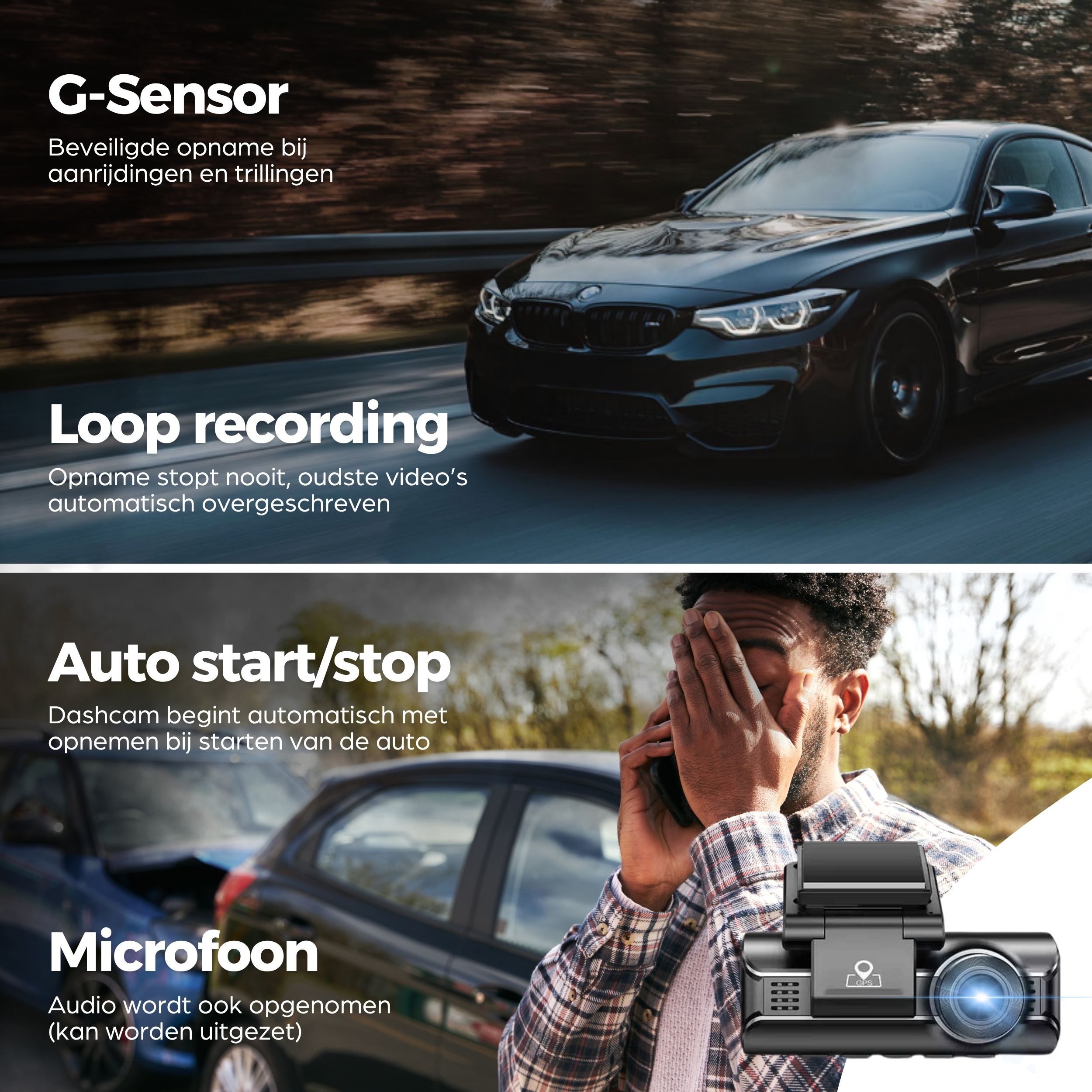 De meegeleverde achter camera en interieur camera's zijn uitgerust met een FullHD (1080p) beeldsensor zodat ook alles wat achter en in de auto gebeurt in de beste kwaliteit wordt vastgelegd. Kentekens en personen zijn dus altijd herkenbaar in beeld, óók in het donker.