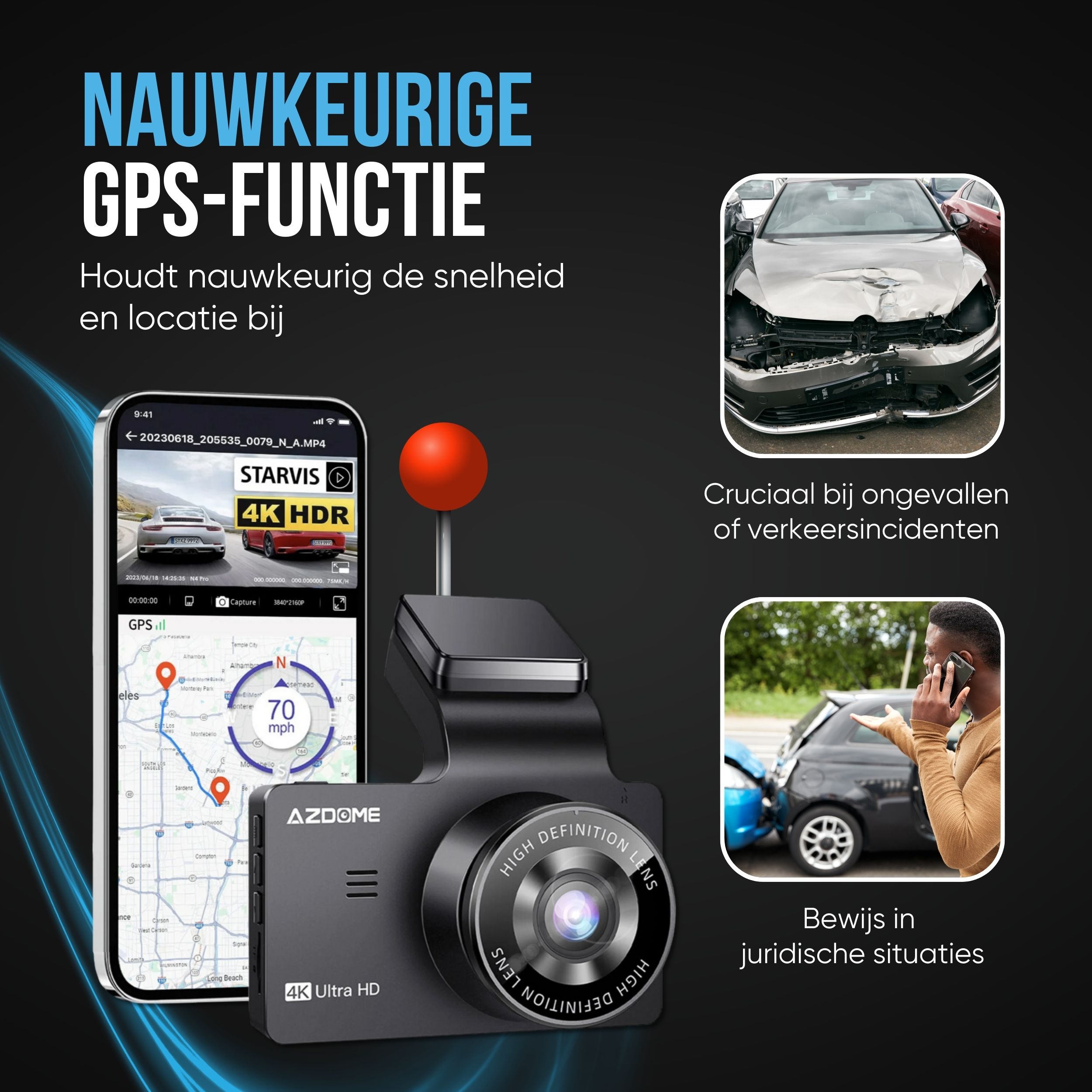 De AZDome M63 Pro is het recentste flagship model van AZDome. Deze hoogwaardige en zeer compleet uitgeruste dashcam beschikt over de nieuwst technologieën en filmt met de scherpste Ultra 4K beeldkwaliteit. Hij wordt geleverd met 64gb Micro SD kaart zodat je direct aan de slag kunt. Door de Wifi zijn alle beelden makkelijk te bekijken en te delen en de ingebouwde GPS zorgt ervoor dat de snelheid en locatie continu worden bijgehouden.