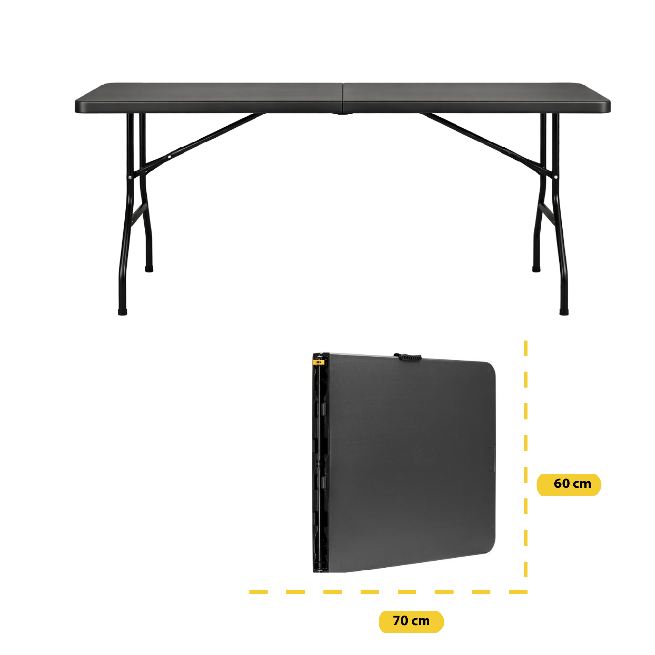 1× BRASQ inklapbare vouwtafel zwart (180×70×74 cm)