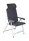 Een zeer luxe en één van de meest comfortabele standenstoelen! Deze stoel is voorzien van een extra dikke en stevige 3D gepolsterde stof. Daarnaast loopt deze gepolsterde stof volledig om het frame heen. Deze luxe stof wordt aan de achterkant van de zittingsbuis heen geslagen en aan de voorzijde loopt de stof door naar de onderzijde, waardoor een zeer aangename zit is gecreëerd. Het hoofdeinde van de rugleuning heeft een extra dikke vulling. De schuimvulling heeft een open celstructuur waardoor er geen vocht wordt vastgehouden. Hierdoor droogt deze stoel sneller dan stoelen met een traditionele schuimvulling. De rugleuning van deze stoel is in 7 standen verstelbaar en daarnaast is deze stoel voorzien van een traploos verstelbare hoofdsteun. De rugleuning (ruglengte: 65-83 cm), zitting en armleggers zijn ergonomisch gevormd voor een maximale ondersteuning. Het geanodiseerde H-frame zorgt voor een hoge stabiliteit en de stoel is zeer compact mee te nemen, namelijk tot 50% minder pakvolume in vergelijking met andere kampeerstoelen. Ook een stoel waarbij aan alle details is gedacht en het aan comfort niet zal ontbreken.
