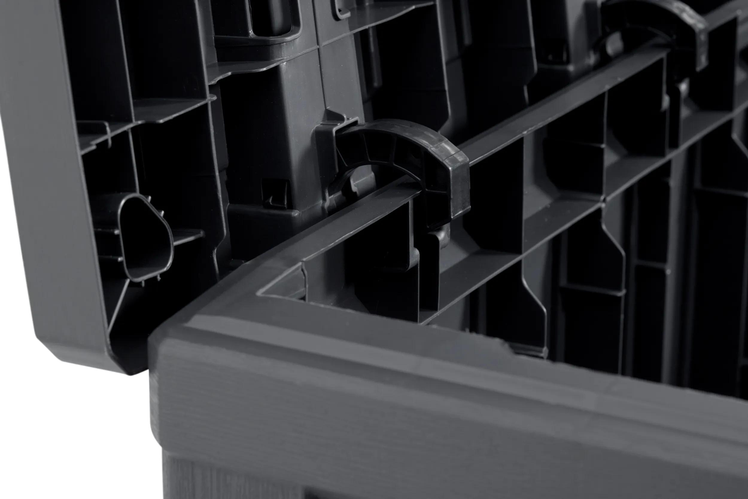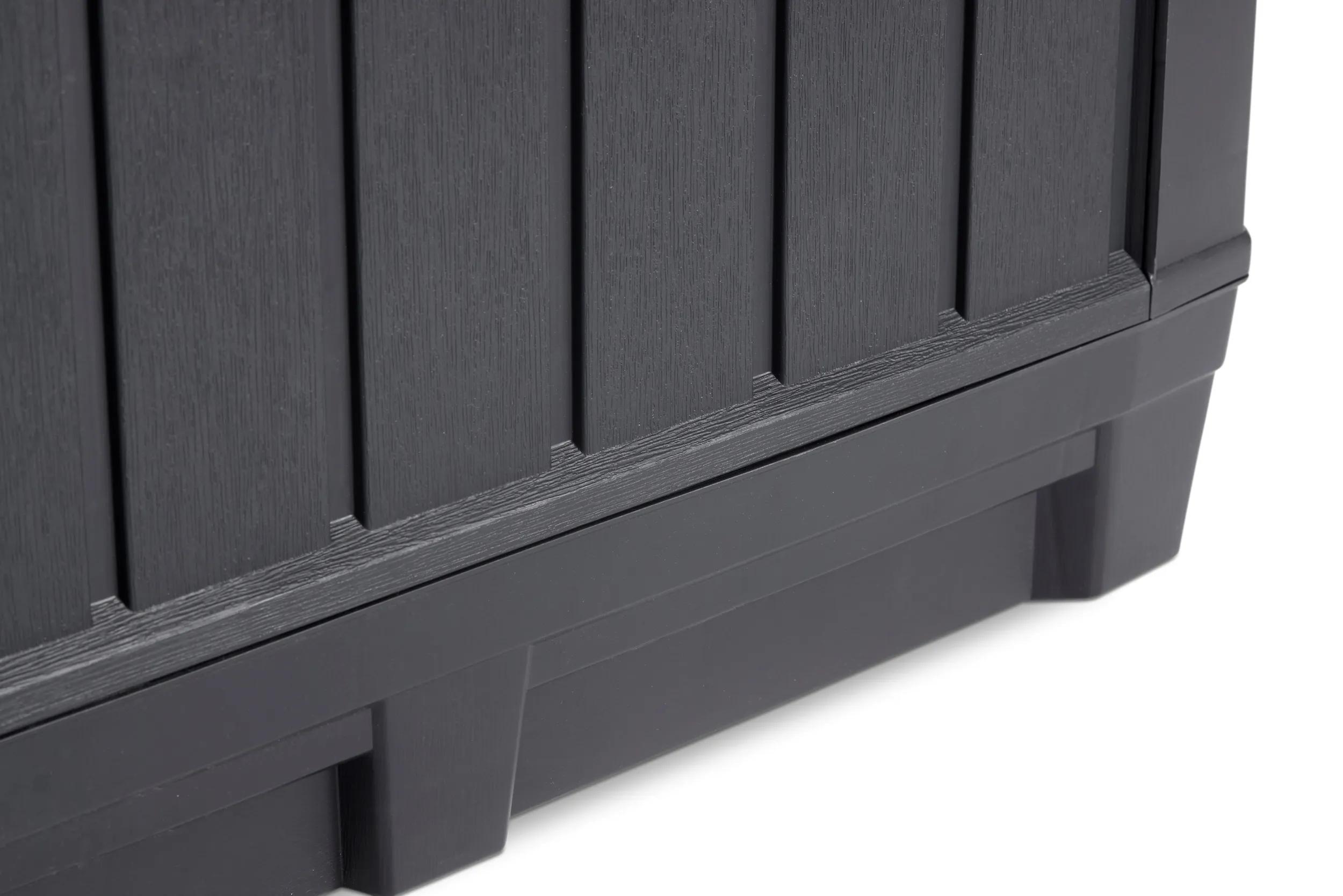 Berg je tuinspullen gemakkelijk en droog op in de ruime Keter Kentwood Opbergbox (350 liter). Met de stijlvolle houtlook is deze handige opbergbox een blikvanger in iedere tuin. De box is gemaakt van weerbestendig en duurzaam kunststof. Deze grote opbergbox houdt al je tuinspullen droog. Hij is stevig en biedt op het deksel een zitplaats voor twee volwassenen. Handig, zo bespaar je tenslotte ruimte in de tuin. De opbergbox is afsluitbaar met een hangslot (niet meegeleverd) en is grafiet van kleur.